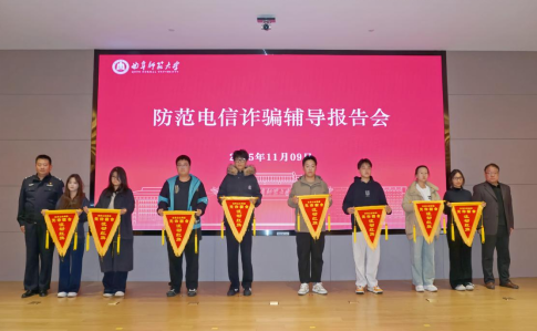 活动期间,还举行了“无诈宿舍”授旗仪式,西关派出所教导员孔德昌警官、学生工作处副处长田凯为“无诈宿舍”代表颁发了流动红旗。此次报告会组织有序,内容针对性强,有效提升了同学们识别、防范和应对电信诈骗的能力。